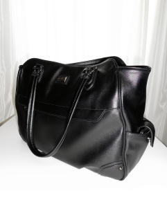 雨に濡れても大丈夫な合皮の、A4サイズの書類が入る大きさのバッグが便利です。色が黒だと汚れが目立ちません。 |